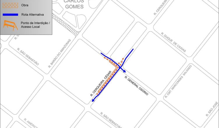 Cruzamento do Centro terá interdição parcial na quinta-feira